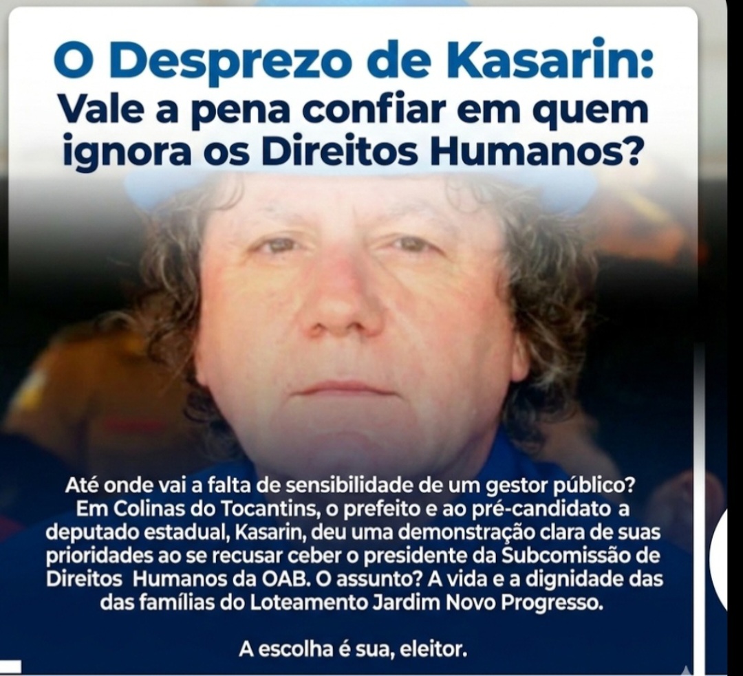 - Promessas vazias: Se Kasarin demonstra esse descaso hoje, como prefeito, o que o povo do Tocantins pode esperar dele como deputado estadual?