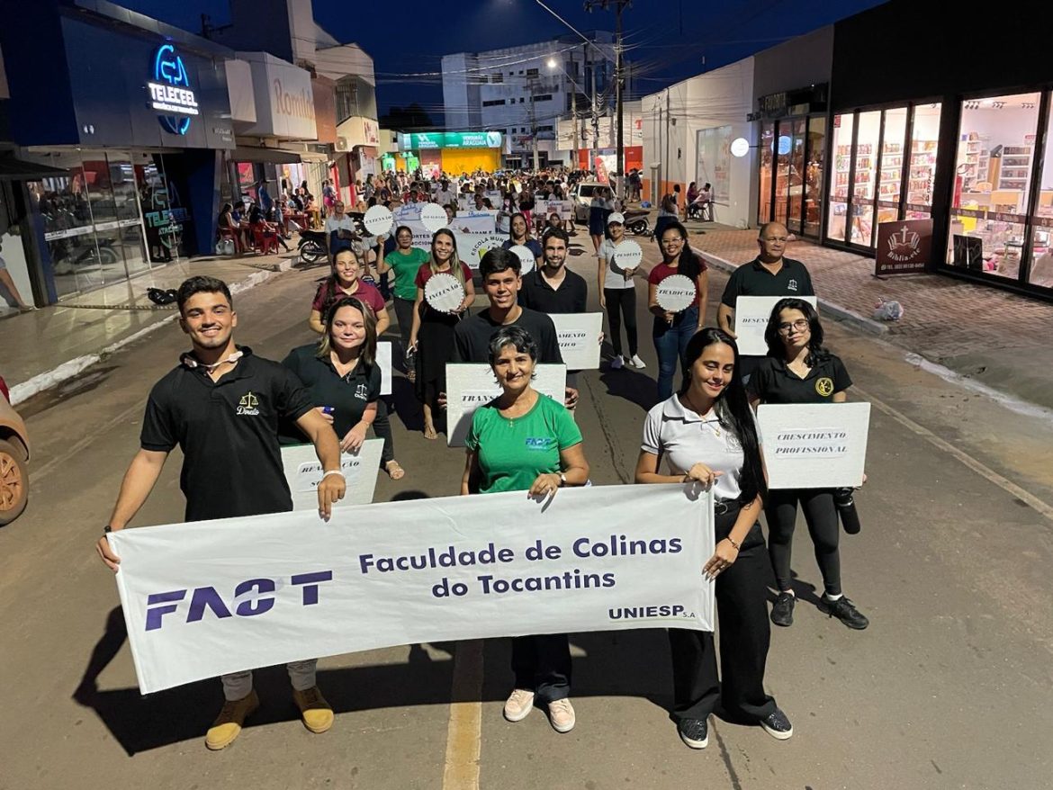 A Doutora Marisete Diretora da FACT(Faculdade de Colinas do Tocantins – antes FIESC) juntamente com o corpo docente coordenaram os acadêmicos no desfile alusivo aniversário de Colinas do Tocantins na sexta-feira dia 25 de abril de 2025 que iniciou após às 17 horas.