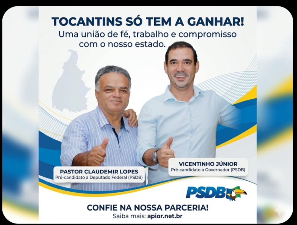 PALMAS – O cenário político do Tocantins ganha um novo fôlego com a confirmação da pré-candidatura do Pastor Claudemir Lopes à Câmara Federal pelo PSDB. Reconhecido por sua liderança junto à comunidade evangélica e sua trajetória de defesa dos valores da família, Claudemir caminha lado a lado com o deputado federal Vicentinho Júnior, pré-candidato ao Governo do Estado.